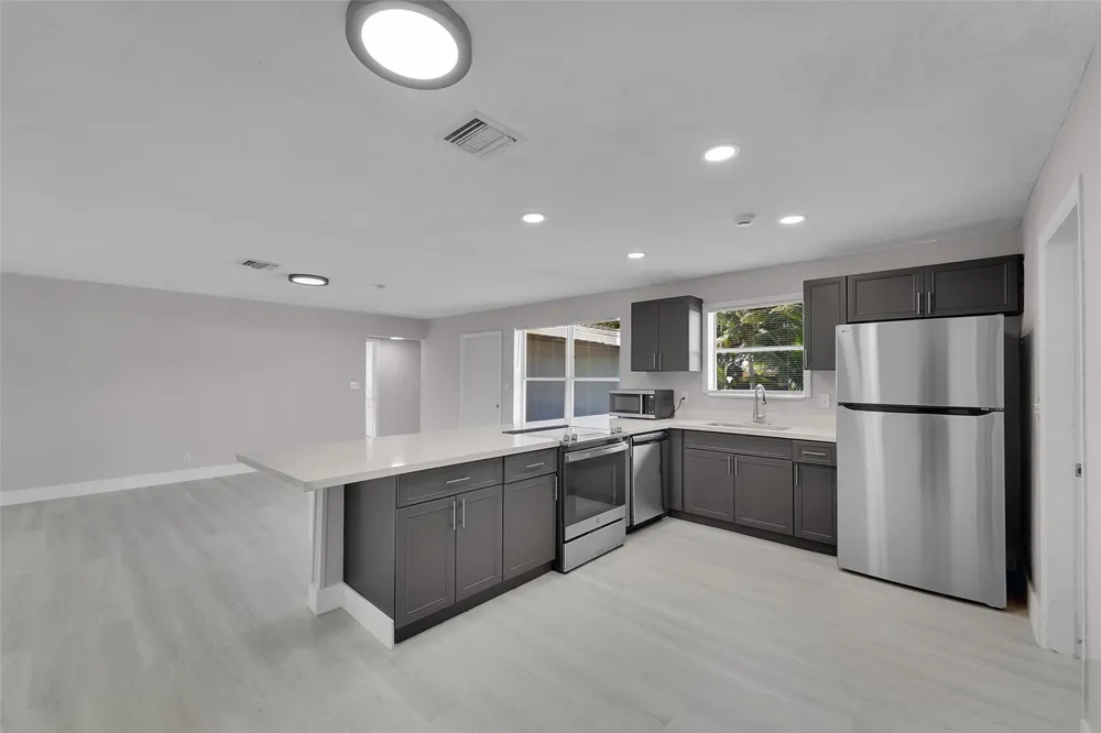 Fort Lauderdale: Updated single-story home with NO HOA, offering a functional open layout and completely move-in ready condition. Major upgrades include a new roof (20212023), new AC (2023), and new electrical panels (2021). The open kitchen features quartz countertops, new cabinetry, and stainless steel appliances, along with brand-new flooring throughout and fully renovated bathrooms. The home includes a covered 1-car carport for added convenience. BONUS: Separate side unit (Guest- Inlaw Quarters) with strong income potentialcan easily lease for approximately $1,400/month. Ideal for investors or buyers looking to live in one unit and rent the other. Conveniently located minutes from I-95, the Turnpike, Fort Lauderdale Airport, beaches, downtown Fort Lauderdale, Miami, and more.